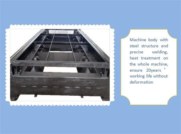 1. O noso corpo da máquina con estrutura de aceiro de 8 mm, 600 treatment tratamento térmico, soldadura precisa, para asegurarse de 20 anos de uso sen deformación.